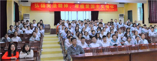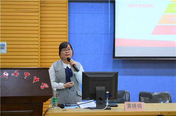 活动分为宪法知识讲座、海报展览、横幅签名及授旗仪式四个环节。讲座期间,黄晓娟围绕“宪法的发展史”“宪法在生活中的作用”“如何遵守宪法”等方面,对宪法在生活中的作用进行了详细解析。通过丰富的案例、详实的数据,通俗易懂的语言,为师生们带来了一场别开生面的法制宣传教育课,赢得了阵阵掌声。期间,活动还通过发动学生进行横幅签字、宣传展板宪法知识讲解等方式进一步激发学生对宪法的学习兴趣。