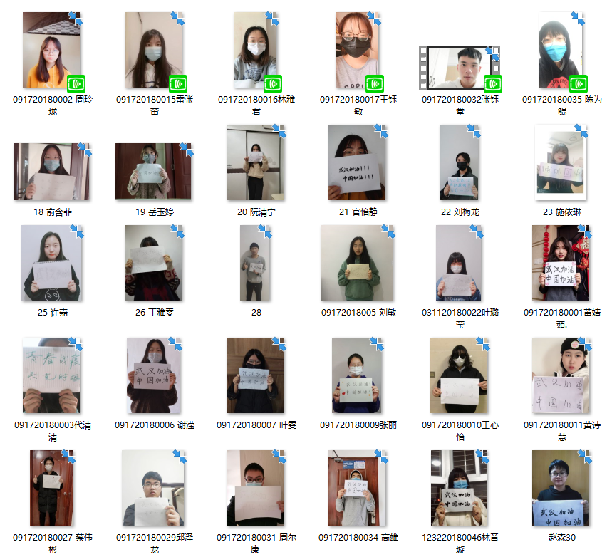 外国语学院团员青年开展“抗疫英文”口语打卡活动,锻炼口语能力,深入了解疫情;录制中英双字幕的视频,教育引导同学们提高对疫情的认识。经济学院团员青年拍摄《网课那些事儿》情景剧来鼓励同学们加强对网课的重视、对学习的重视;录制说唱音频、手势舞视频,为武汉加油。人文学院团员青年制作了大量的海报、祝福视频等,展现了团员青年齐心抗疫的良好精神风貌。法学院团员青年制作了关于新冠性病毒的科普宣传PPT,开展了在线疫情相关法律问题问答,提高了团员青年的法律理解能力,加强了对于社会热点问题的分析能力。工程技术学院团员青年组织发布每日一则新闻小广播,及时了解疫情的实时动态,学习防疫知识,开展“手写接力,一同助力”活动,表达对武汉的祝福。会计学院团员青年创作抗疫诗歌,制作剪纸、孔明灯等为防疫工作者们献上祝福。管理学院团员青年制作《真心英雄》音乐合辑视频,用音乐来传递抗击疫情的正能量,开展“新型冠性肺炎防控知识”线上问卷调查,提高团员青年的防范意识。各社团团支部也结合自身优势开展了抗疫书画作品创作、抗疫祝福歌曲演奏、抗疫手势舞表演、居家抗疫健身教学视频拍摄、抗疫诗歌朗诵等活动,充分展现了仰恩青年团结一致共同抗疫的决心和信心。