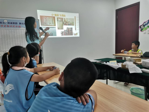 实践队员为小朋友讲解“变废为宝”