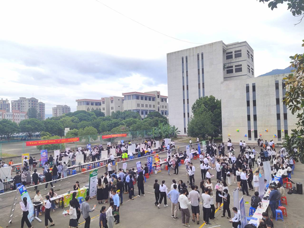 10月21日下午,管理学院在第一教学区网球场举办2021届毕业生校园招聘会,校党委副书记程如平、学生事务部主任吴胜潮、管理学院院长翁景德、党总支书记兼常务副院长许惠铭、校就业指导与服务中心主任朱玉华等到场指导并与用人单位及学生亲切交流。
