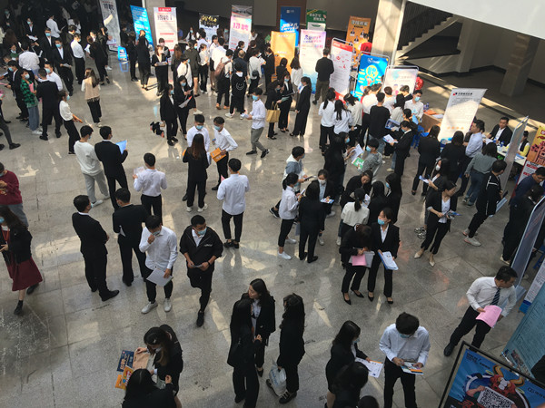 本次招聘会共有56家企业到场,为毕业生提供各类就业岗位达1090余个,涵盖金融、经济、国贸三个专业,涉及证券、贸易、保险、财务、教育等几十个行业。招聘会上,参会单位着重对岗位薪资待遇、企业文化、岗位发展等方面进行了展示,2017级毕业生们带着精心准备的简历积极应聘,非毕业班学生前来观摩。