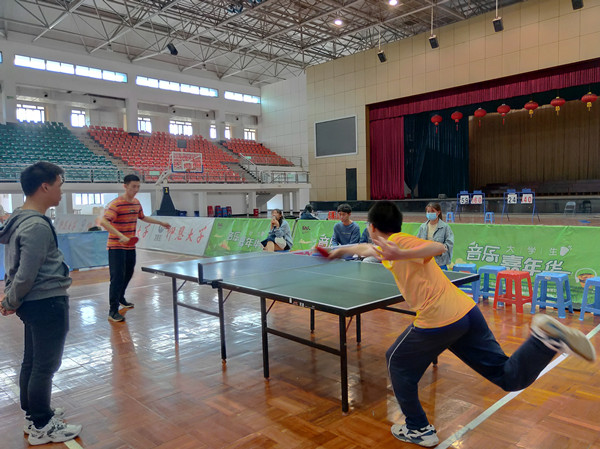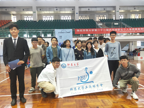 11月14日上午,由体育教研部主办、体育协会乒乓球分会承办的第二十二届乒乓球新生个人争霸赛在仰恩文体中心举行,共有57名2020级新生报名参加。