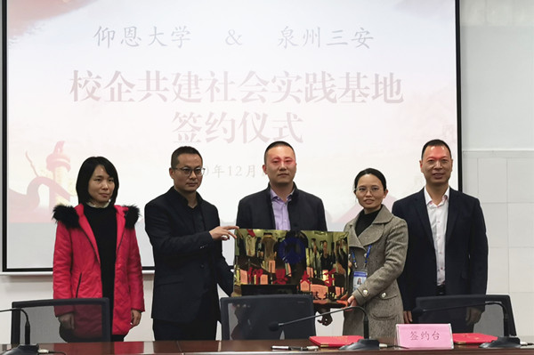 金承勇代表学校向泉州三安半导体科技有限公司授“世界杯今日赛况查询社会实践基地”牌匾,标志着双方进一步探索出联合培养应用创新型人才的新模式,搭建产学研平台,促进产教融合,加快形成教育链、人才链与产业链、创新链同频共振、良性互动发展格局。