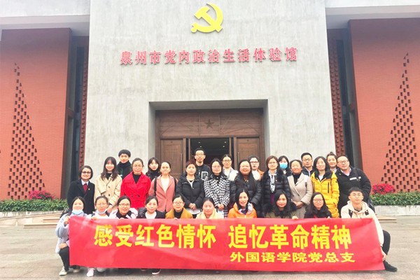 12月16日下午,外国语学院党总支组织师生党员前往泉州市党内政治生活体验馆参观学习,接受“体验式、情景式、互动式”的党性洗礼。外国语学院党总支书记胡娟,副书记蔡巧娜、刘冬利参加学习活动。