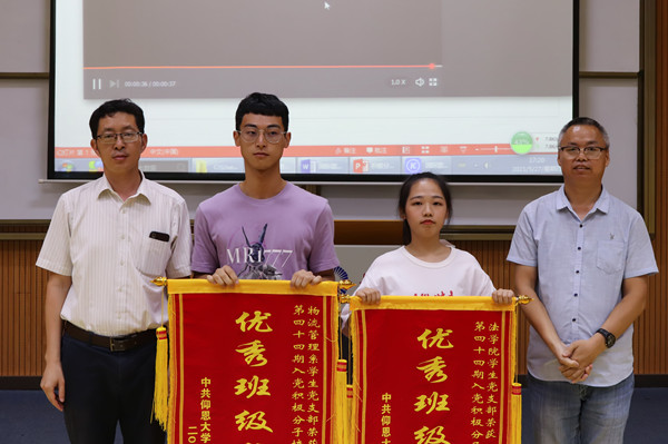 王洋同志宣读了《关于表彰第四十四期入党积极分子培训班先进班级、优秀学员的通知》,法学院学生党支部、管理学院物流管理系学生党支部评为“优秀班级”,徐子越、张梦婷等64名学员被评为“优秀学员”。各学院党总支书记、副书记为学员代表颁发结业证书并为获奖集体以及个人颁奖。