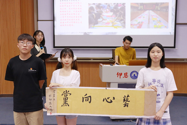 就业与创业者协会召开以“青春心向党,风采社团人”为主题的学习会,并通过观看党史相关影视剧、开展素质拓展活动以及拍摄献礼建党百年祝福视频等方式,展示社团成员风采,重温党的奋斗历程,激发社团成员对党和国家的热爱之情;体育协会以演讲、党史问答互动、健美操表演等形式进行展示,将拼搏奋斗的体育精神与爱党、爱国情怀有机结合,以昂扬向上、青春活力的姿态向党的生日献礼,坚定跟党信念;书画社举办红五月书画展、建党百年书画系列比赛和百米手绘祝福比赛等活动,以书画献礼,用笔墨抒情,从青年学子的视角绘制波澜壮阔的时代画卷,绘出心中对党辉煌历史的敬仰与赞颂。各学生社团的精彩展示博得了现场观众的阵阵掌声和喝彩,现场气氛热烈。