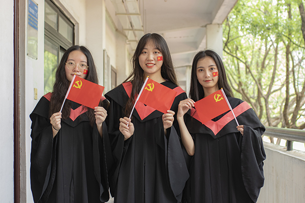 参与百年党史知识问答,与党旗进行一次合影……最近,在普照大礼堂、图书馆、创业园等校内多个标志性地方,身着学士服的毕业生们积极参与学校举办的庆祝建党100周年毕业季打卡活动,以别开生面的形式参与了一次党史学习主题教育。