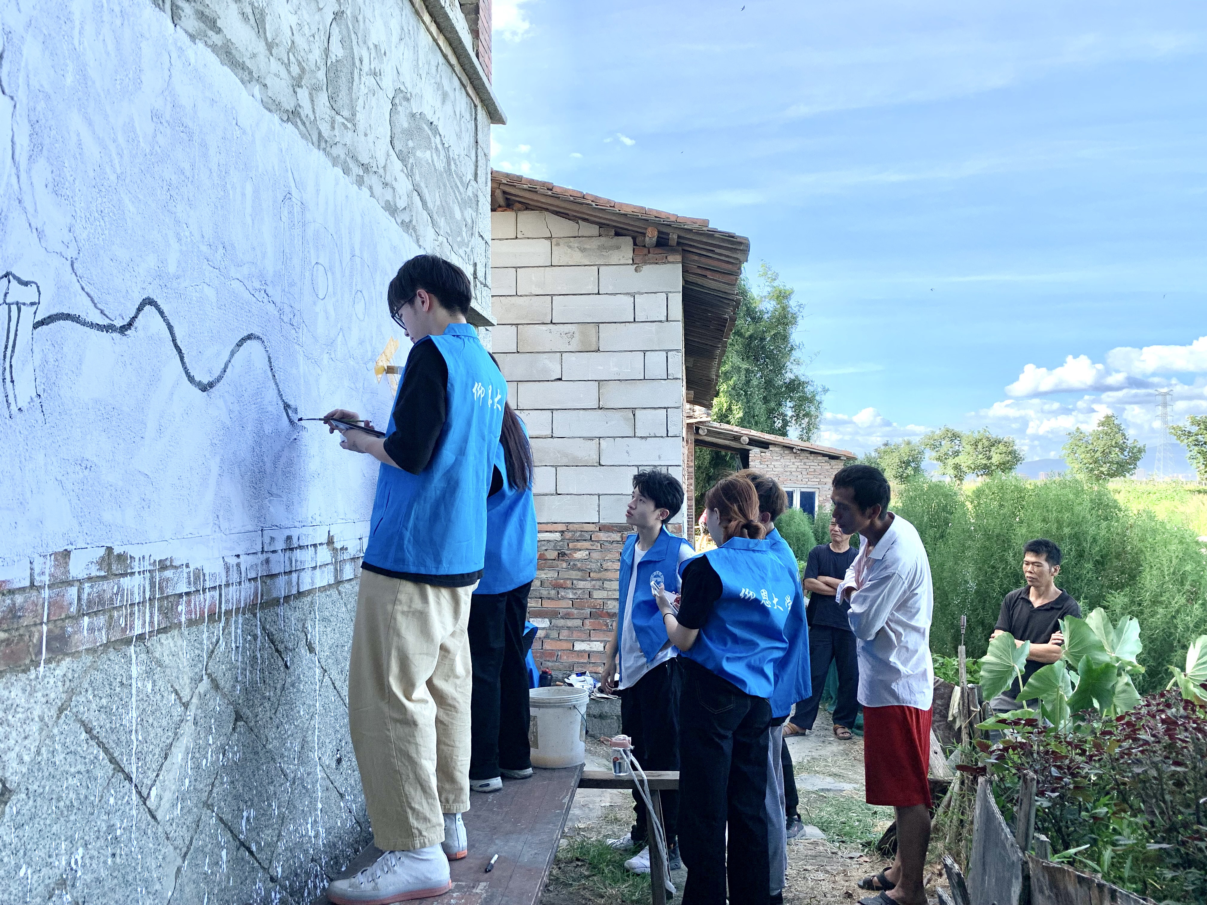 活动中,实践队员们精心筛选墙绘内容,开展“山河壮丽颂党恩”主题墙绘活动。在绘画过程中,实践队员团结协作,积极投入,刷底色、画底稿、上颜色……沉浸在艺术创作的世界里。在墙绘过程中,村民们纷纷驻足观看,欣赏着队员们的创作,为他们的创意举动点赞。墙绘以群众喜闻乐见的方式,开展红色文化宣传,涵养文明乡风,促进新农村建设。
