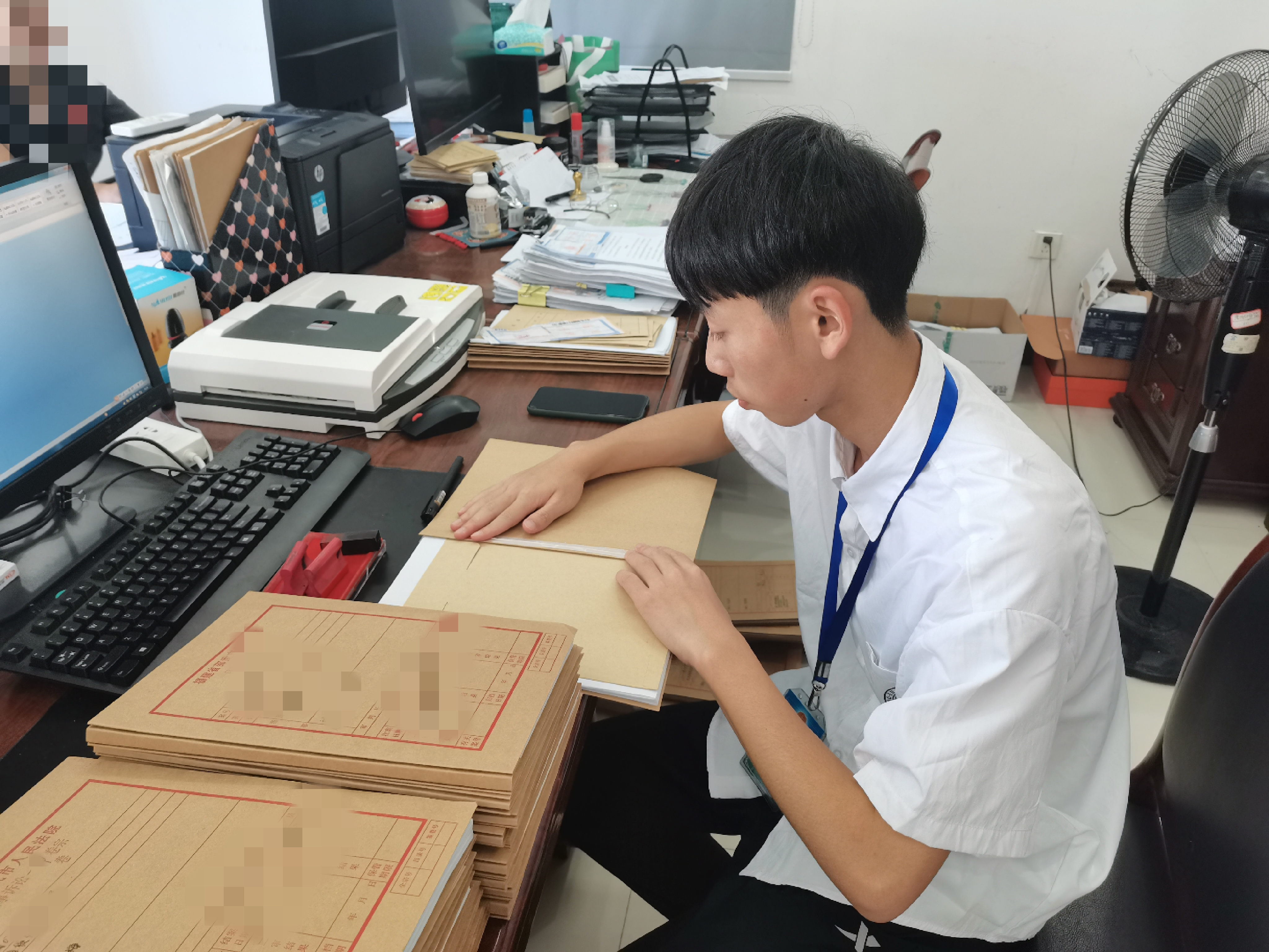 实践队员们在书记员的专业指导下,初步掌握了卷宗末尾拆线、贴封条、盖章等流程,并在书记员的陪同下对卷宗应诉、举证、出庭通知书等有无漏盖公章的情况进行了复查。期间,实践队员们积极参与,熟悉并掌握核对章的不同使用方法,严格按照要求对分类后的卷宗进行了分批处理。