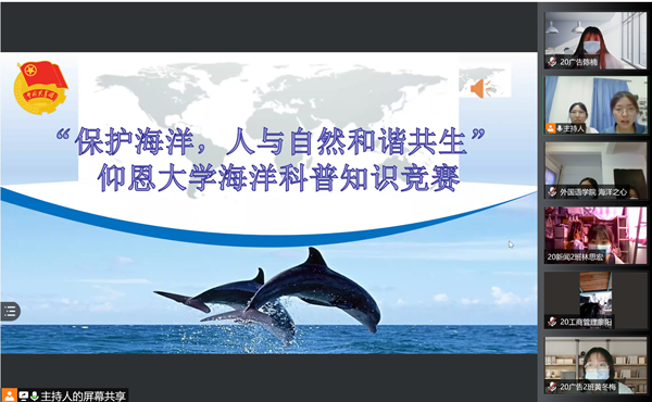近日,校团委在线上举行以“保护海洋,人与自然和谐共生”为主题的海洋知识竞赛,选手和观众全部通过线上平台参与比赛。