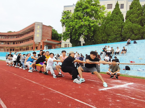 此次比赛采用三局两胜循环+淘汰赛制的形式举行,来自全校各院系17支参赛队伍共340余名同学参加了比赛。比赛现场,参赛队员精神抖擞,磨拳擦掌。随着裁判的哨声响起,场上队员们紧握长绳,卯足了干劲。未参赛的同学们自发组成啦啦队为比赛队员加油助威,哨子声、呐喊声此起彼伏,现场气氛热烈。