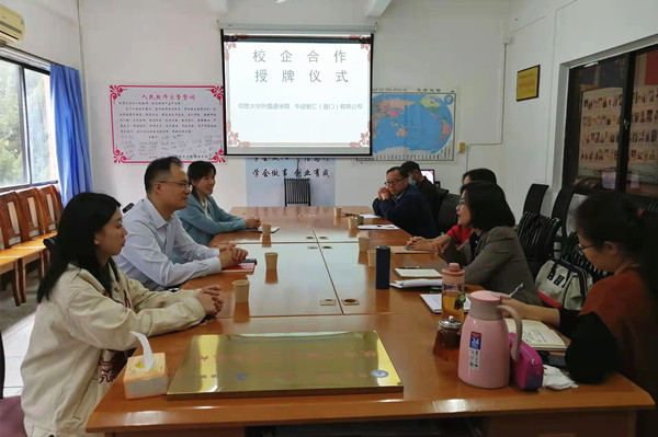 11月18日下午,外国语学院与中语智汇(厦门)公司在仰光楼二楼会议室举行共建实践基地揭牌仪式。中语智汇(厦门)公司总经理叶麟、外国语学院院长胡娟、党总支书记却正强、副院长林燕媚等参加揭牌仪式。