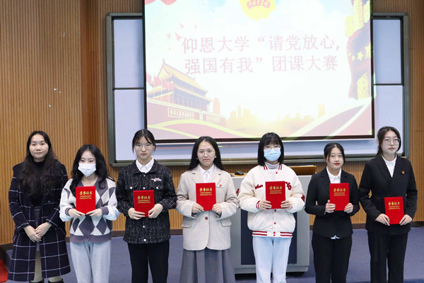 为深入贯彻习近平总书记“七一”重要讲话精神,切实推进共青团的教育引领作用,引导广大青年团员厚植爱党、爱国、爱社会主义的情感,增强我校广大团员坚定“请党放心,强国有我”的信念,12月23日晚,由校团委主办的“请党放心,强国有我”团课大赛决赛在第三教学区和昌教学楼海纳讲堂举行。校团委书记杨勤、副书记曹流、校团委委员、各学院团委书记等观看比赛并担任评委。