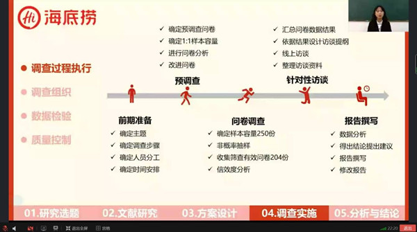 比赛中,同学们通过提交调研报告、展示PPT和视频等参赛材料的形式,向评委老师汇报各自小组的市场调查与分析的结果,他们以各自的风格展现团队调研的合理性和科学性,从方案的初具雏形到逐渐完善,体现出团队对命题的深入把握。