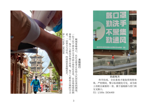 “如果不是亲历,你无法想象,泉州古城曾经在短短的三天时间里如此跌宕起伏……”疫情突袭泉州,身处封控区的仰恩学子林水鑫在王家声教授指导下,聚焦疫情防控主题,充分发挥摄影记录真实事件和社会生活的独特作用,以新闻学子的责任和担当,用镜头记录感人的战“疫”瞬间、传递伟大的抗疫精神。