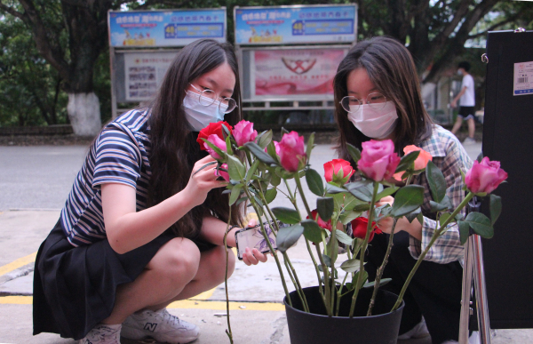 “以物换花以前没有接触过,只听过以物换物”,19级金融专业陆术雨说,“这次活动不局限于男女之间,就像宣传说的,表达自己的爱,什么爱都可以。我打算把这朵代表爱的花送给我的妈妈,希望她能平安喜乐,万事顺遂。”(易班学生工作站/文图)