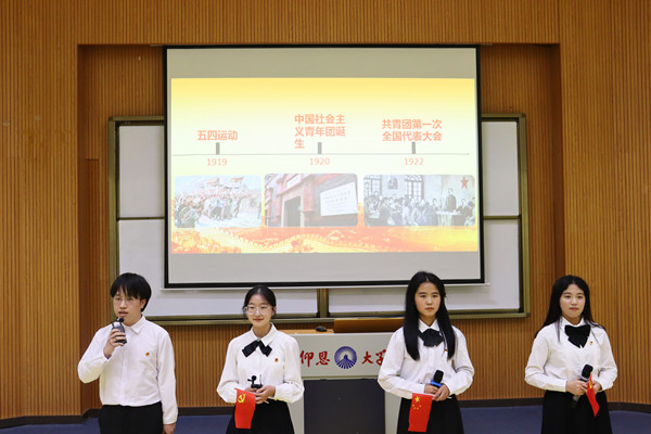 经过各学院团委遴选,共有8支队伍脱颖而出进入决赛。比赛现场,参赛选手们或单人参赛,或组合参赛,配合大气磅礴或婉转动人的音乐,将自己对百年团史的学习感悟娓娓道来。他们以“团的故事”为主线,通过朗诵、视频、歌曲、情景剧等方式讲述红色故事,或讴歌先烈事迹,追寻红色足迹,弘扬革命精神;或赞扬巾帼气魄,追忆红色记忆,致敬奋斗力量;或回望光辉历程,传承红色基因,展望时代新篇。参赛选手们从大历史中挖掘新故事,在新时代里讲述精神传承,在红色故事中汲取榜样力量,赓续共产党人的精神血脉,用慷慨激昂的声音,号召仰恩青年在实现中华民族伟大复兴中国梦的新长征路上奋勇搏击,引起现场听众强烈的内心共鸣。