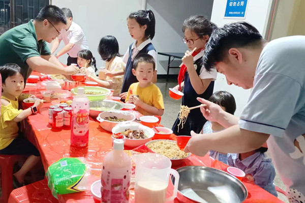 晚上7时许,教职工们纷纷端出精心烹饪的拿手好菜,带上家人和孩子一起围在长桌旁,逐一品尝各色美食。“印尼虾片、馓子、包尔萨克、剁椒鱼头、宁远豆腐、油炸鸡锁骨、焖虾、凉拌莴笋丝、水果沙拉……”,一道道来自各个地区、各个民族、各种风味的美食,色味俱佳,秀色可餐,让人垂涎三尺。校工会还为教职工们精心准备闽南肉粽,粽香四溢,软糯香甜,油而不腻,现场充满欢声笑语,洋溢着浓浓的节日气氛。