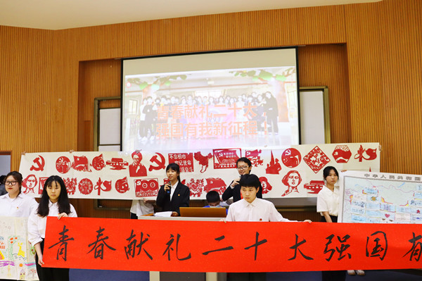 第十届团日活动大赛自2月开赛以来,经历了团支部活动、初赛、复赛等环节。经过院系团组织层层选拔,共有22个团支部晋级决赛。各团支部紧紧围绕“喜迎二十大、永远跟党走、奋进新征程”的主线,结合PPT与视频进行讲解,在活动内容和形式两方面进行精心构思和创新,与歌曲、朗诵、绘画、剪纸、书法、手工作品、情景剧等多元化表现形式相融合,将丰富的团日活动成果直观呈现在评委与观众们的面前。各团支部通过开展团课学习、观看党史题材电影、举行红色经典诵读、绘画党团故事、参观红色基地、开展志愿服务、制作文化产品等活动,全方位、多角度地回顾了百年来党领导下的青年运动史,展现了共青团员对习近平总书记重要讲话精神的深刻领悟,彰显了新时代青年团员的志气、骨气和底气。精彩的展示环节赢得了现场观众的阵阵喝彩,现场掌声不断。各团支部还制作了精美的展板,将团日活动的成果详细直观地展示在评委和观众们的面前。