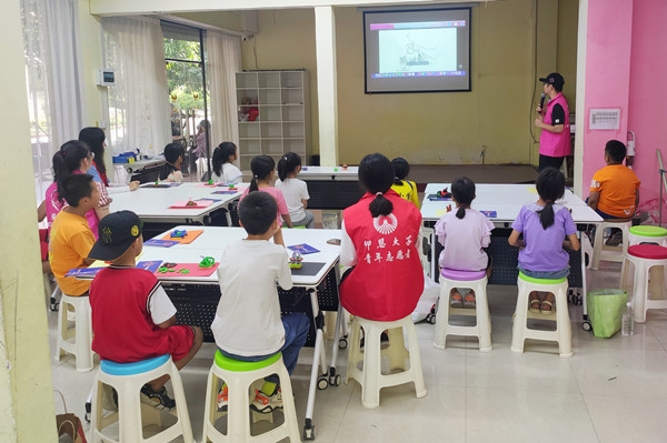 禁毒宣传志愿者们还将禁毒的宣传带向校外,在马甲镇文化站,禁毒宣传志愿者们和小朋友们一同观看禁毒宣传手册、分享禁毒主题PPT,为小朋友们讲解毒品知识,尤其是毒品的危害,使小朋友们更直观地认识到毒品对人体的危害,进一步增强未成年人自觉远离毒品的能力