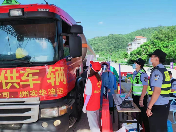 活动中,队员们配合卡点工作人员检查核对过往车辆驾驶员的行程卡、体温,及登记相关信息等,并对来往车辆进行消杀工作。期间,实践队员还捐赠口罩、消毒水、免洗手液等防疫物资。
