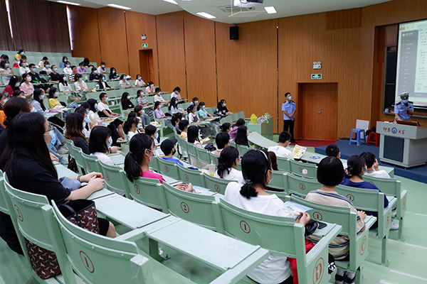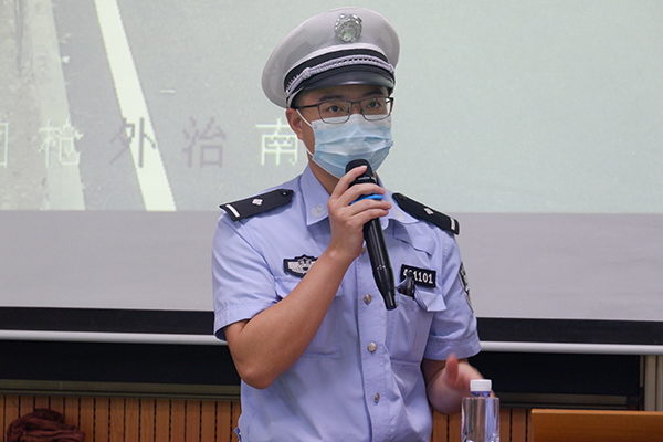 曾剑平警官以“珍爱生命,拒绝酒驾”为主题为新生讲解相关知识