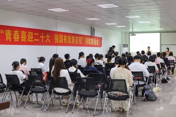 “带着百年序章的运筹,怀揣千秋伟业的憧憬,开启新的赶考之路,乘势而上,砥砺前行……”近日,我校在图书馆举办“青春喜迎二十大 强国有我新征程”诗歌朗诵会,师生以歌颂党、歌颂祖国、颂扬英雄人物、弘扬爱国主义,讴歌新时代,抒发大家对党和祖国、对大好河山的热爱,表达迎接二十大的喜悦之情。